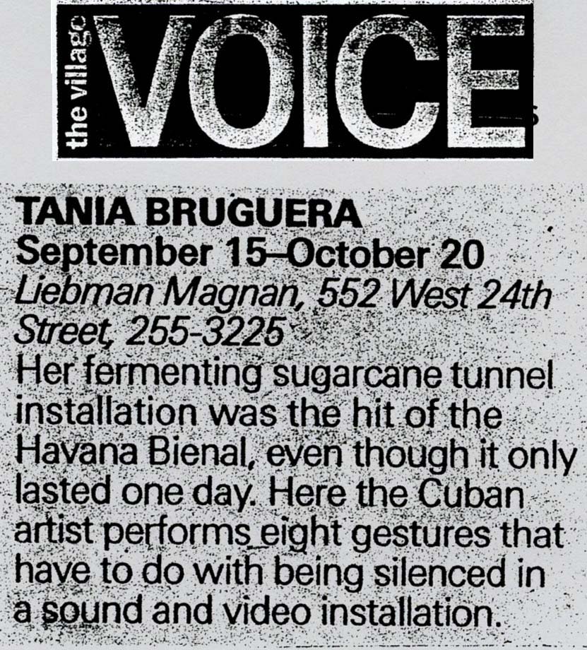 From: Camhi, Leslie. “Verse into video. The Village Voice,” Vol. XLVI, no. 43, October 30, 2001.