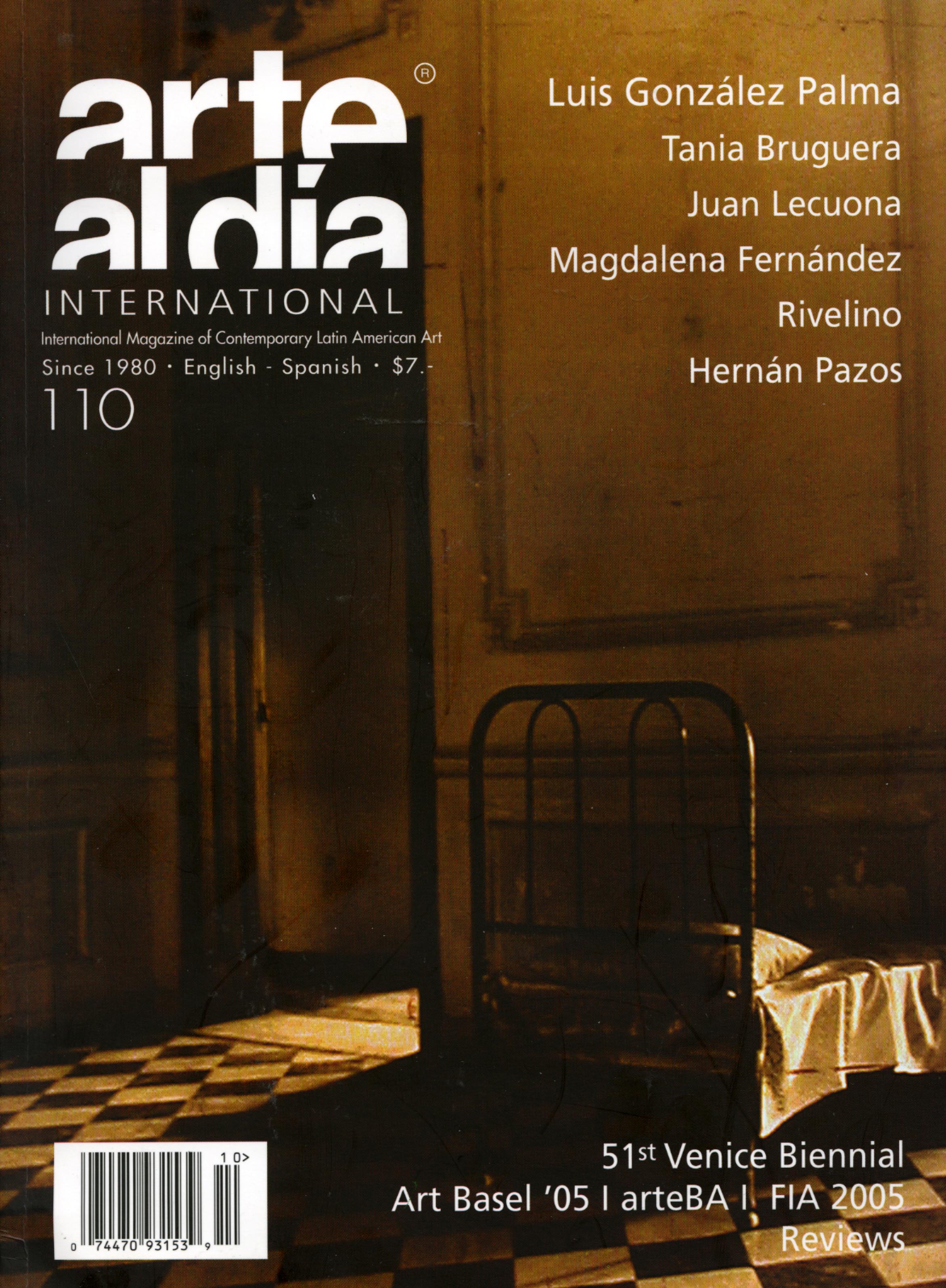 From: Desnoes, Edmundo. “Tania Bruguera. Both Faces of the Moon,” Arte al Día, Nr. 110, 2005, New York, United States, (illust.) pp. 26 – 31.
