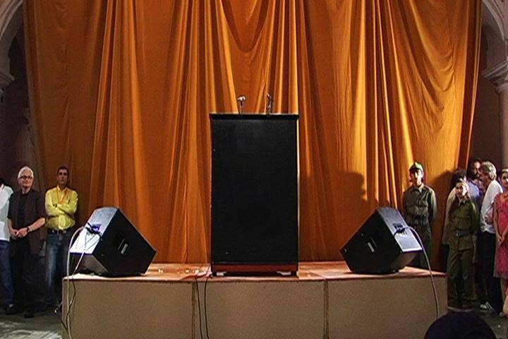 As recent press releases from Cuban official institutions claimed (Consejo Nacional de las Artes Plásticas and Presidencia de la Asociación de Artistas Plásticos de la UNEAC), La Plaza de la Revolutción is a symbolic space. Affirming the public nature of the Plaza, “Tatlin’s Whisper # 6” proposes a symbolic collective occupation for only 90 minutes.