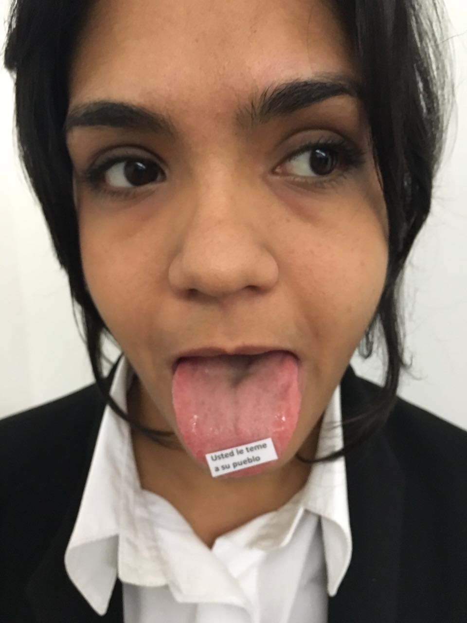 Tania Bruguera is an American-Cuban artist who was arrested after attempting to stage her performance piece #YoTambienExijo in Havana in late 2014. Mounted soon after the apparent thaw in US-Cuban relations, Bruguera’s piece offered members of the public the chance of one minute of ‘censor-free’ expression in Havana’s Plaza de la Revolución.