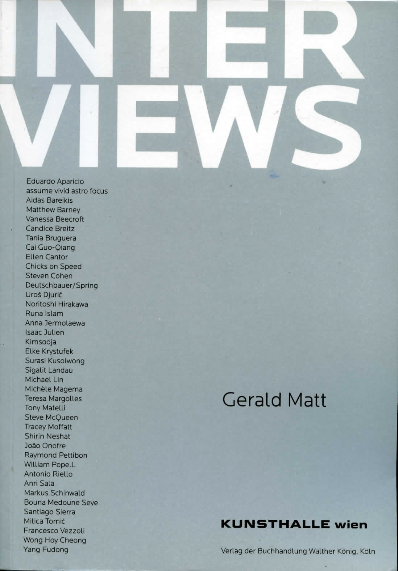 From: Matt, Gerald. “Interviews,” Ed. Kunsthalle Wein, Austria, 2007, (illust.) pp. 66 – 75.