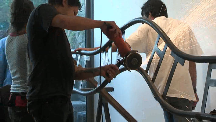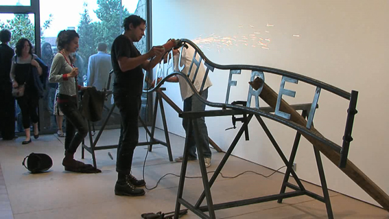 Materiales: reproducción de objeto robado a escala 1:1, metal, herramientas de trabajo, trabajador.